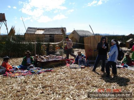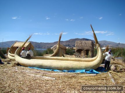 Ilha Flutuante dos Uros Um passeio imperdível, para quem está visitando o Lago Titicaca é alugar um barco e visitar as Ilhas Flutuantes dos Uros. Estes descendem de uma das mais antigas civilizações da América e preservam muito da sua cultura como caça, artesanatos, pesca e a habilidade em trabalhar com a totora, uma espécie de junto encontrado no lago, com que é confeccionado praticamente todos os utensílios utilizados no dia a dia, desde roupas até casas e até mesmo o solo onde eles vivem, pois as ilhas, que são flutuantes, são produzidas a partir deste material. Como principal meio de sobrevivência, atualmente os Uros, se utilizam da arte de trabalhar com a totora para a produção de artesanatos que são vendidos aos turistas que visitam as ilhas.